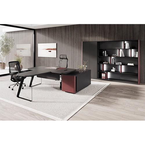 Единый стиль выдерживается благодаря изогнутым кожаным вставкам на боковинах тумб и шкафов, а также кожаным экранам рабочих столов. Благодаря этому письменные столы коллекции прекрасно сочетаются с высокими шкафами и стеллажами, создавая целостное и стильное пространство.